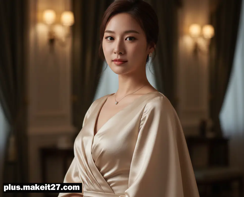 - 하이엔드 럭셔리 패션 (High-end Luxury Fashion): ‘[고급 이브닝 드레스와 스카프]’처럼 시각적 화려함을 극대화합니다. 부드러운 드레이프성(천이 흐르는 모양)을 통해 미적 가치를 전달하며, 우리가 보다 기품 있고 특별한 순간을 향유하도록 돕는 성숙한 과정입니다.