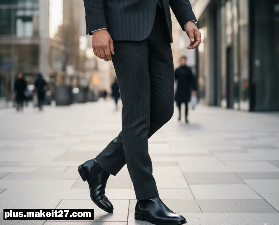 A: 첼시부츠는 ‘끈이 없는 매끄러운 앞등 디자인과 날렵한 발목 라인’ 덕분에 구두만큼이나 단정한 인상을 주기 때문입니다. 끈이 없어 바지 밑단에 걸리지 않고 미니멀한 실루엣을 유지할 수 있어 정장이나 슬랙스와 매치했을 때 세련된 이미지를 완성합니다. 이는 직장인들이 착용의 편리함과 격식 있는 스타일을 동시에 챙길 수 있도록 돕는 실용적인 패션 솔루션입니다.